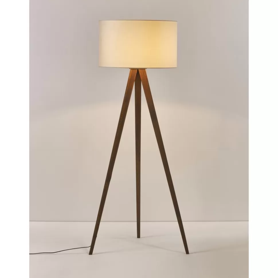 Clearance Westwing Collection Skandi-Tripod Stehlampe Jake Aus Massivholz Mit Samt-Schirm