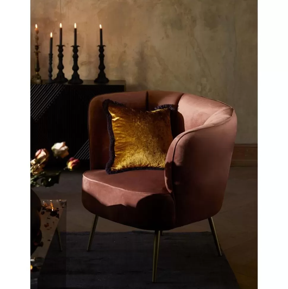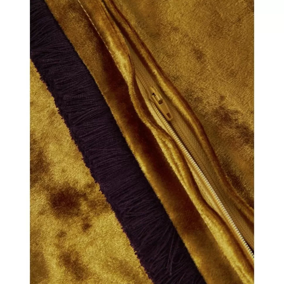 Outlet Westwing Collection Samt-Kissenhulle Cyrus In Ockergelb Mit Fransen